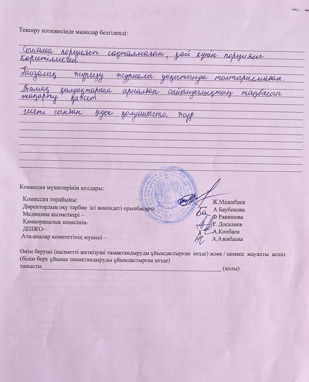 Тамақтану сапасына мониторинг актісі » СШ№16 с.Сыпатай